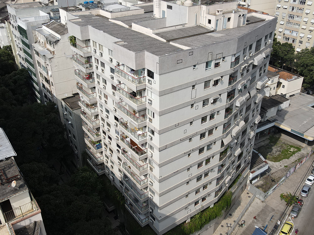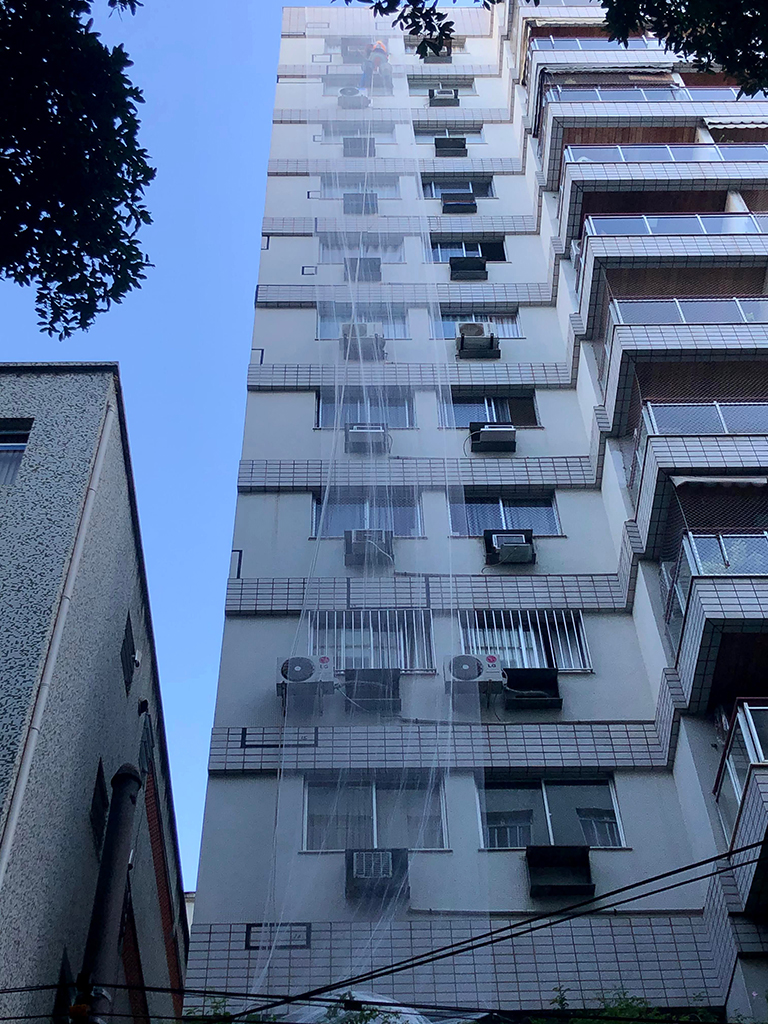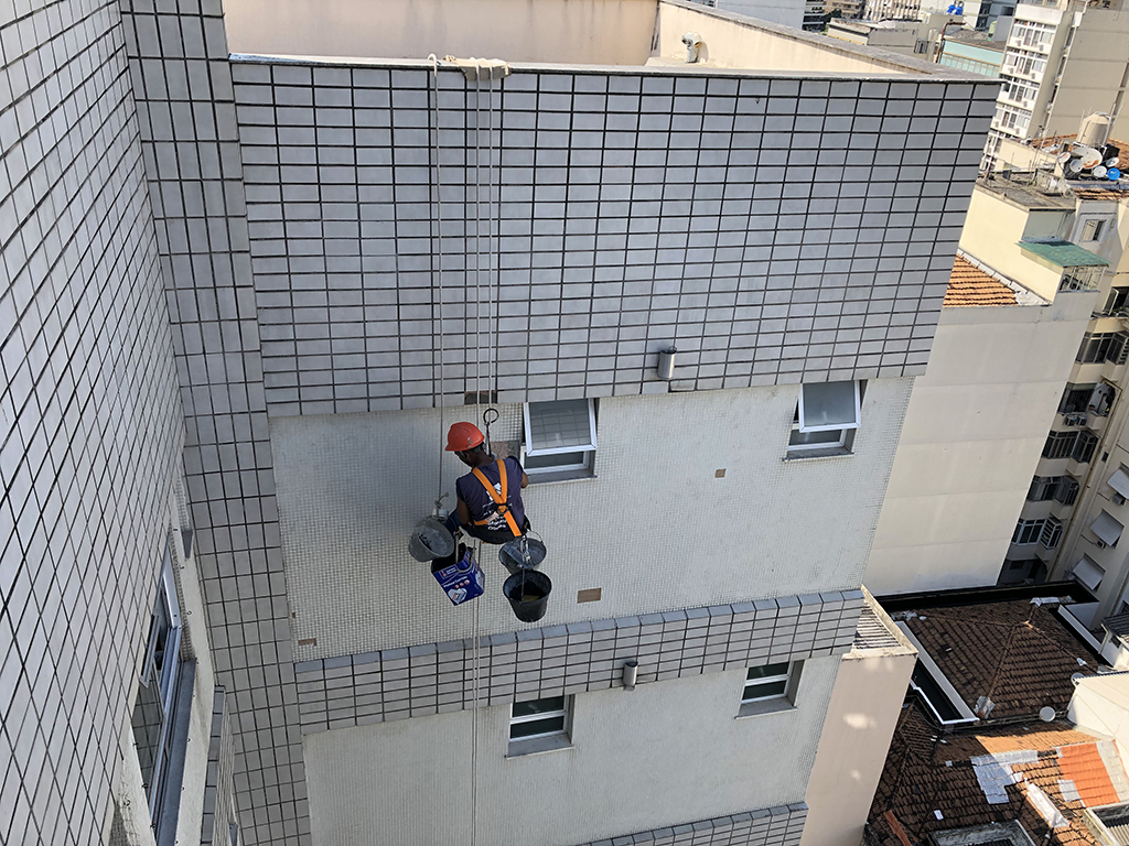 Teste de percussão e reforma de todas as fachadas e prismas de ventilação, revestidas em pastilhas e emboço.