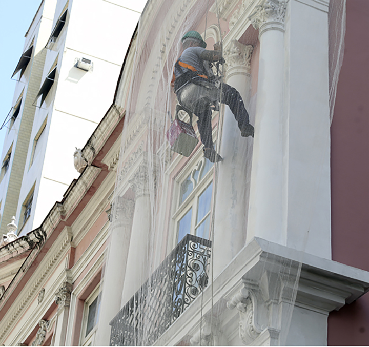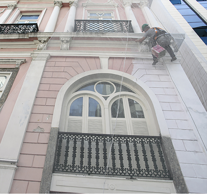 Recuperação, reforma e pintura de fachada.